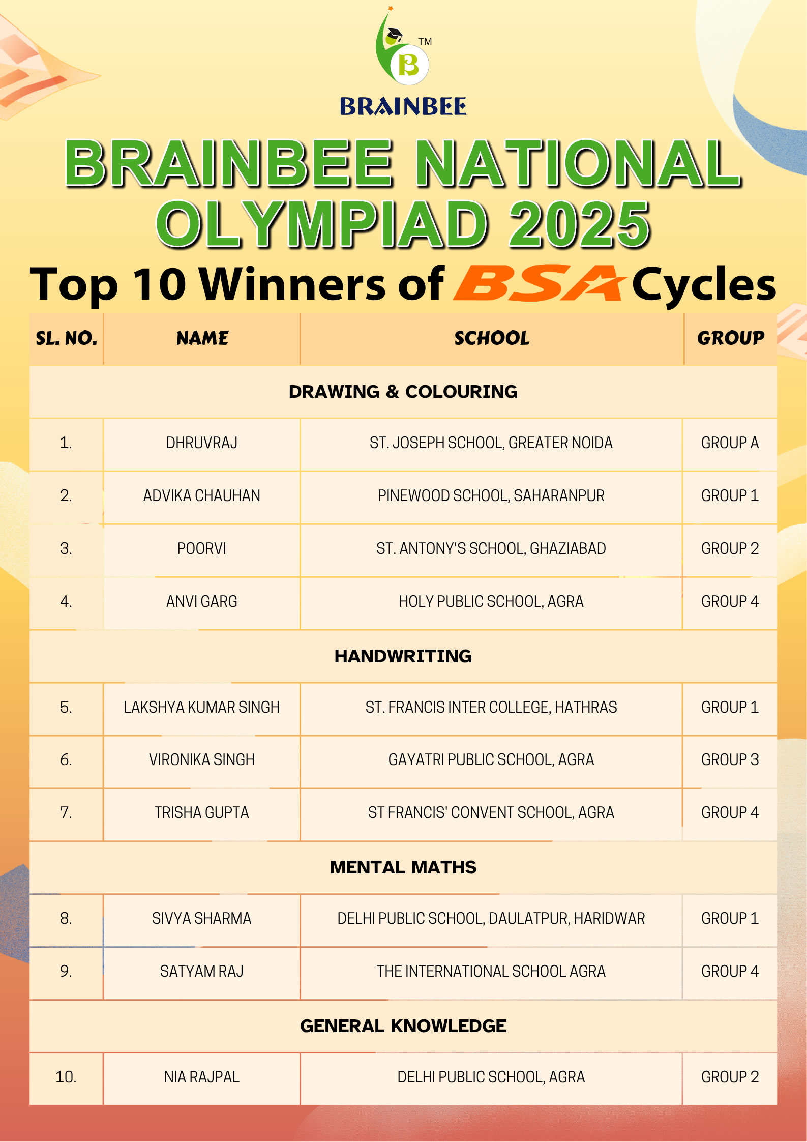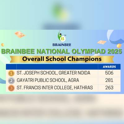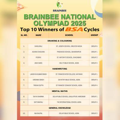 Cycle winners of Brainbee National Olympiad with Mr. Naveen Jain (Member of Parliament – Rajya Sabha), Dr. Ranjana Bansal (Managing Director of the Ashok Group & Social activist) & Ms. Sonali Khandelwal (Managing Director, Brainbee Kids Academy)